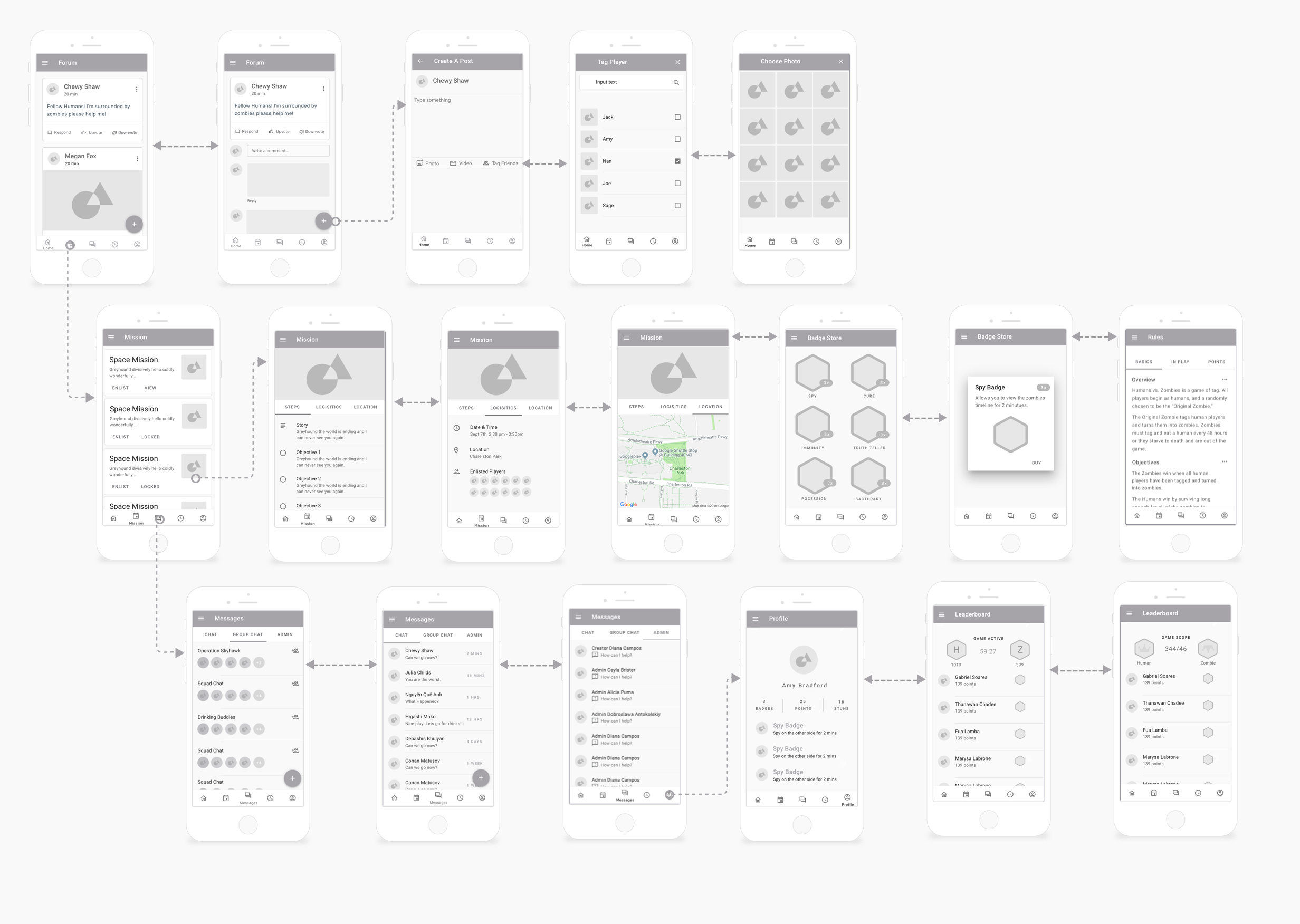 I began my exploration phase by conducting 5 remote user interviews with experienced players. Having never played HVZ, I used this opportunity to understand how HVZ is played, what motivates players, and some of the problems that come up.